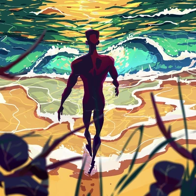 Vibrant warm colours and dark skin.